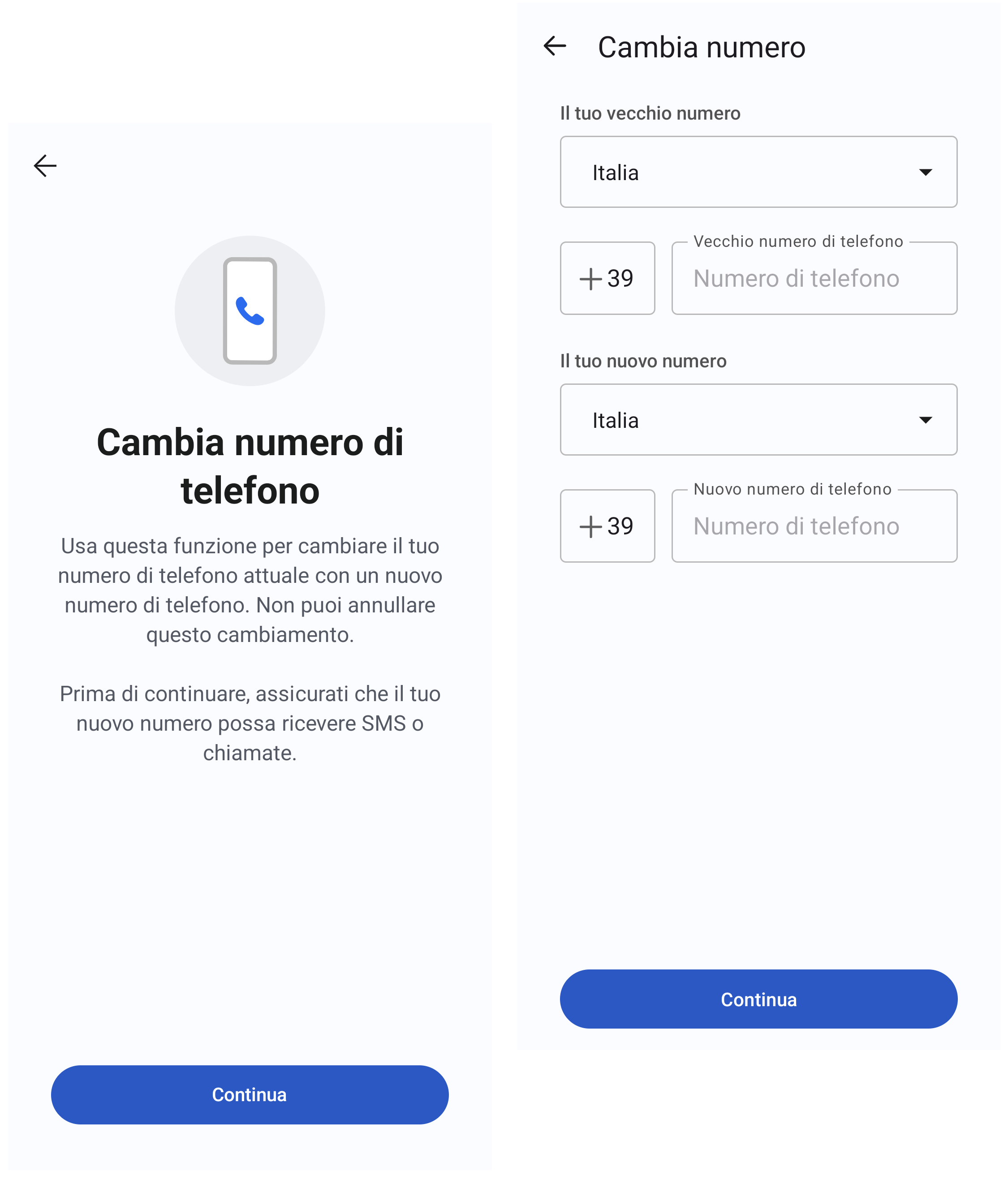 Se hai già un account Signal ma vuoi usare un numero di telefono diverso, puoi cambiarlo tramite Impostazioni di Signal > Account > Cambia numero di telefono.