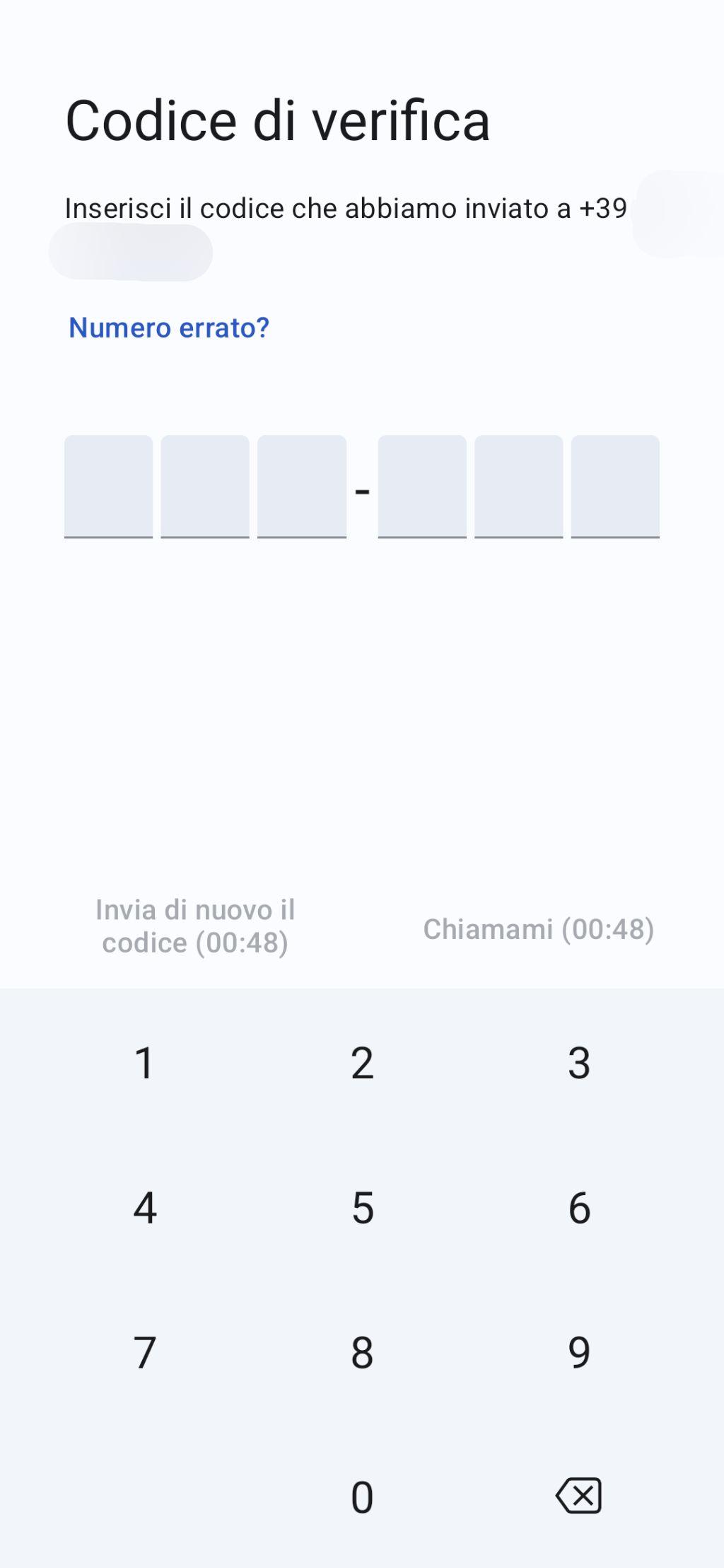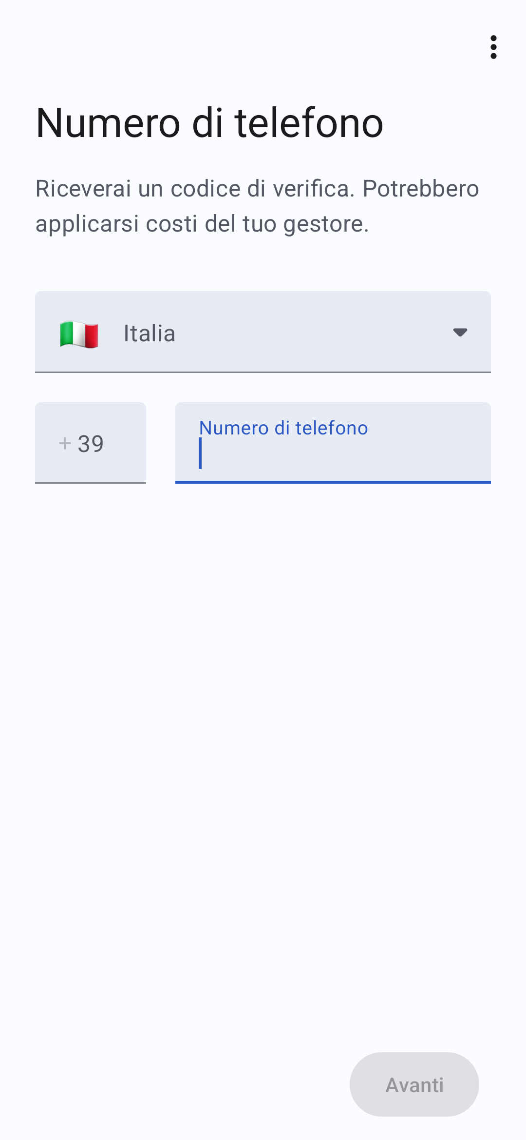 Assicurati di inserire il tuo numero senza lo zero iniziale (ad esempio, +39 3…). Una volta inserito correttamente il numero, tocca Avanti nell'angolo in basso a destra: