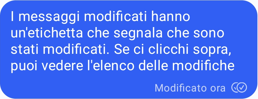 Il messaggio modificato viene aggiornato sia per il mittente che per i(l) destinatari(o) e viene contrassegnato come "Modificato" nella nuvoletta del messaggio.