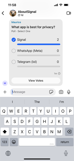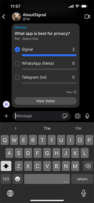 Inoltre Signal ha rifinito ulteriormente l'imminente funzione dei sondaggi in questo aggiornamento.