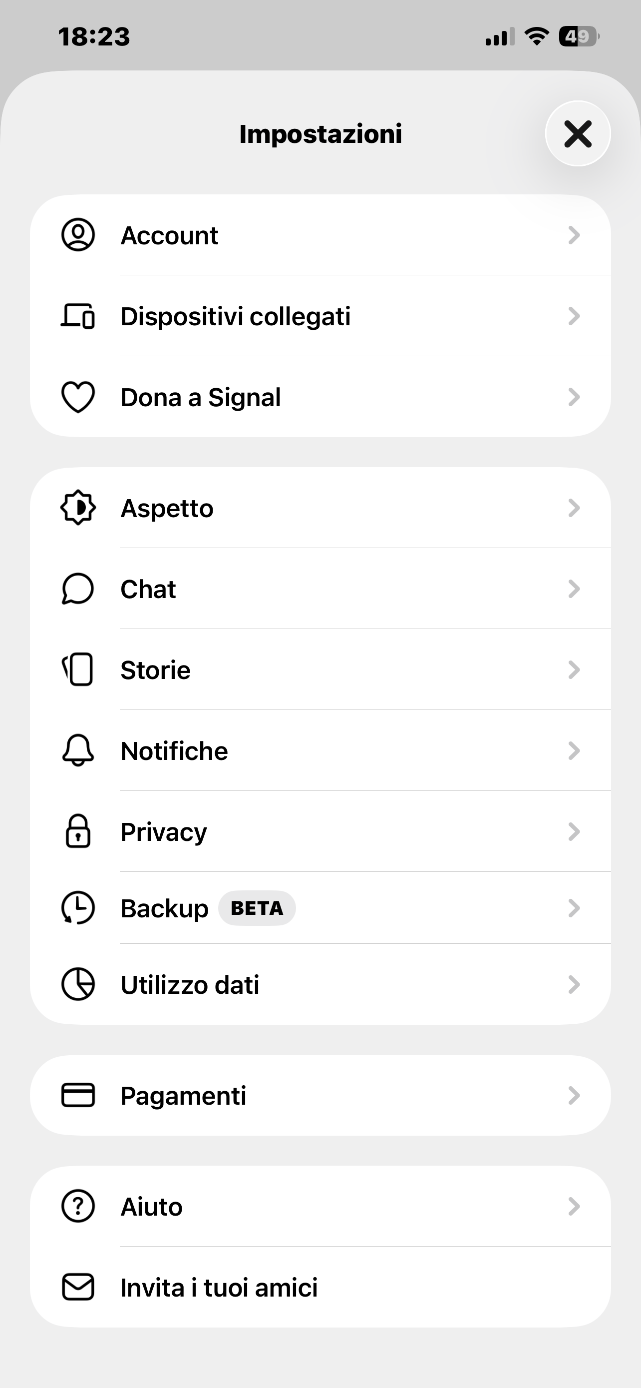 Nella versione beta 7.79 di Signal per iOS, i tester di TestFlight possono abilitare Signal backups via Settings > Backups.