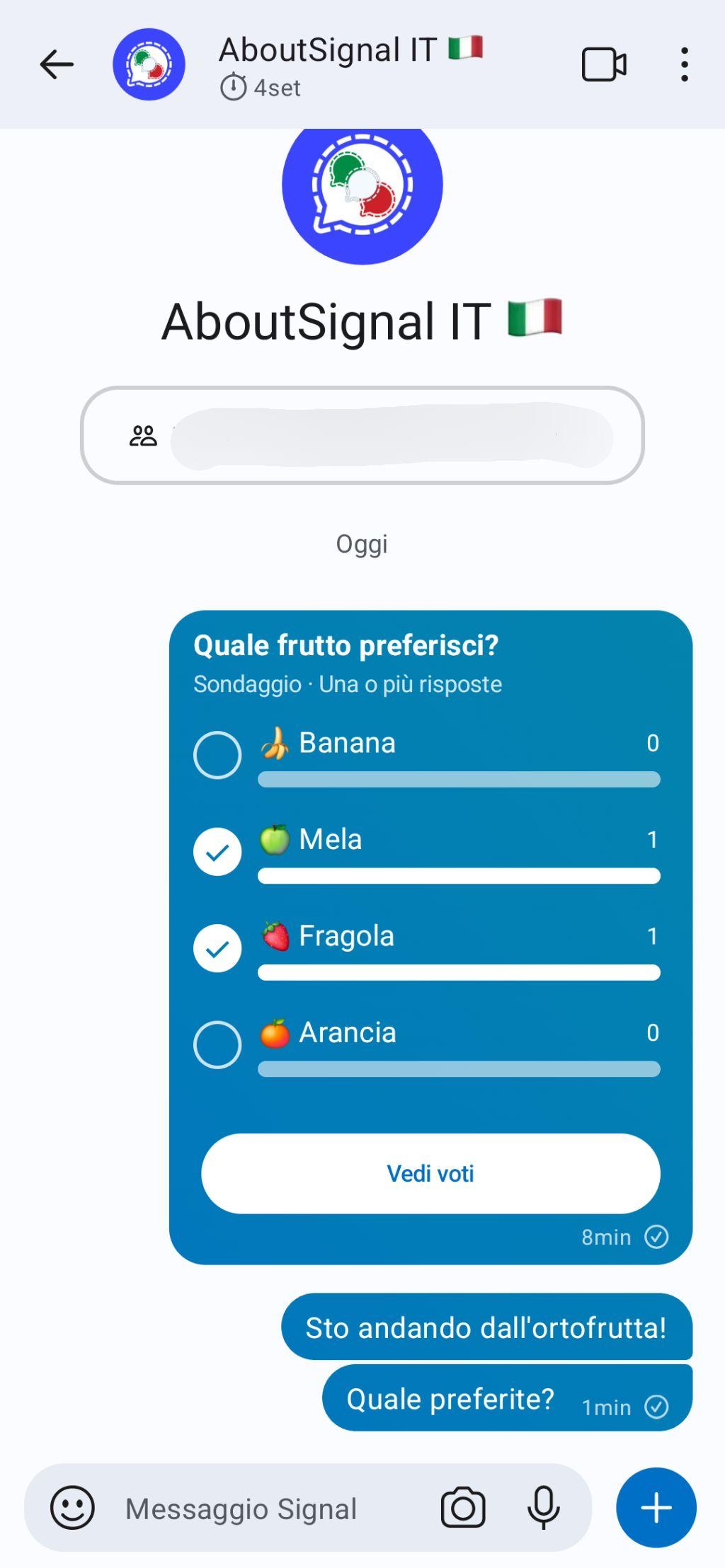 Con questo aggiornamento Signal risponde a una delle richieste più popolari delle persone che passano da WhatsApp a Signal. I sondaggi rendono l'organizzazione nelle chat di gruppo molto più semplice e divertente.